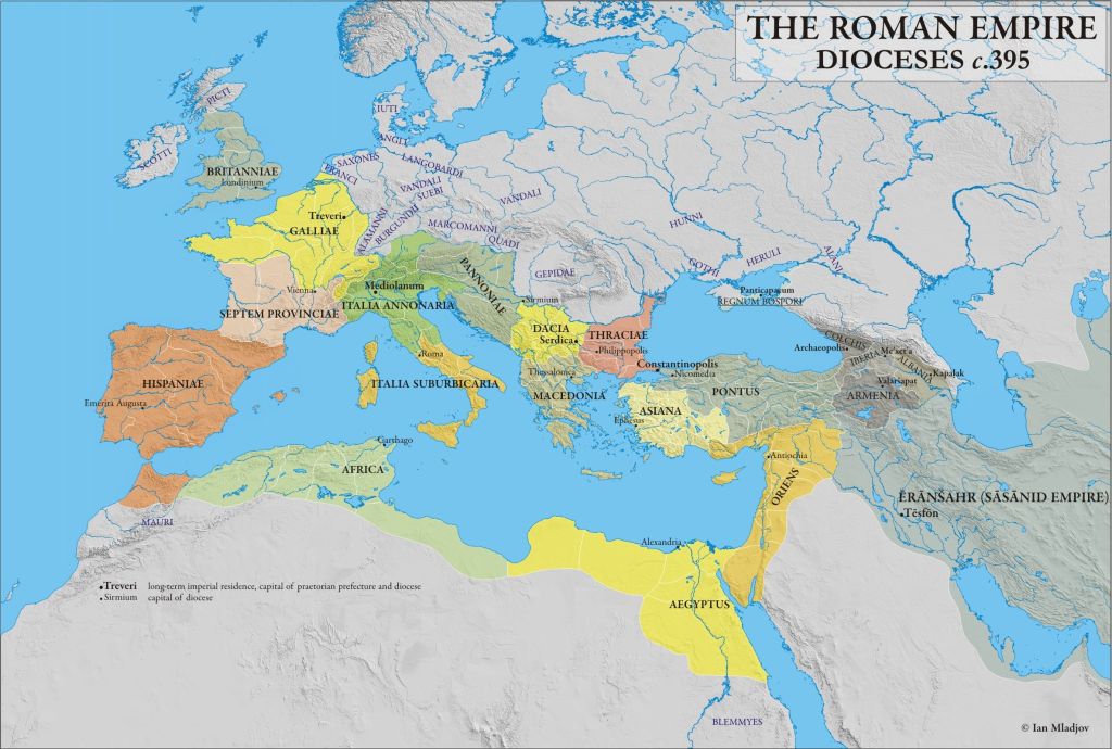 Infine il Frigido fu un disastro per l’Impero anche dal punto di vista politico: come spero di aver fatto notare più volte le guerre civile erano il vero cancro che nuoceva continuamente alla stabilità e forza dell’impero. In tempi più felici queste erano crisi momentanee da cui poi l’impero si riprendeva, spesso alla guida di un nuovo forte leader come Diocleziano, Costantino o anche Giuliano. Oggi, in una situazione che stava per diventare assai più fragile e con una invitta tribù che legava molta della sua fedeltà al nome di Teodosio e di nessun altro, l’impero avrebbe avuto bisogno di un lungo regno da parte di quest’ultimo, in modo da permettere a Teodosio di rimettere in piedi la forza dell’Impero e preparare i suoi giovani figli, Onorio e Arcadio, a succedergli. D’altronde Teodosio non era così anziano, aveva cinquantaquattro anni ed era ora imperatore di tutto il mondo Romano, l’ultimo a potersi fregiare di questo titolo. Con un po’ di fortuna Teodosio avrebbe potuto preparare l’impero a reggere alla tempesta che stava per scatenarsi ai suoi confini. Invece, 5 mesi dopo, l’imponderabile accadde.