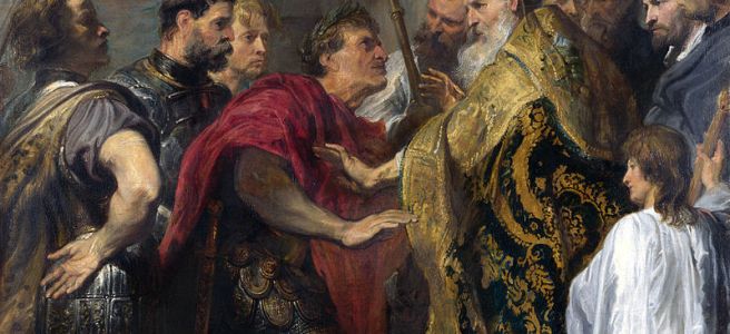Infine Teodosio è fondamentale perché finì per inchinarsi al volere del suo vescovo Ambrogio: Teodosio avrebbe potuto far arrestare e bandire il vescovo, come faranno i sovrani orientali di qui a pochi anni con Giovani Crisostomo a Costantinopoli. Ne aveva il potere e l’autorità. Eppure non lo fece non perché Ambrogio avesse dietro di sé chissà quale potere terreno al di là di qualche centinaio di guardie personali armate. Lo fece perché la sua coscienza di sovrano profondamente religioso gli chiedeva di farlo per la sua salvezza nel mondo al di là: le fiamme della dannazione erano più pericolose di qualunque arma. Il precedente era stato creato: presto per la dottrina della Chiesa i sovrani temporali potranno e dovranno inchinarsi all’autorità suprema della Chiesa Cattolica Apostolica e del suo rappresentante in terra, l’erede di San Pietro Apostolo.