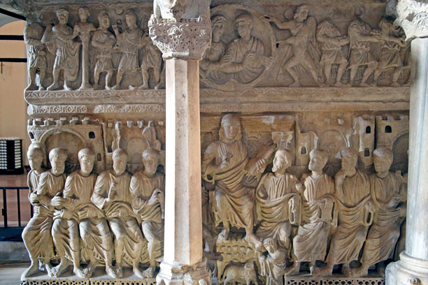 A Monza, nel tesoro della cattedrale, c’è un dittico che ritrae Stilicone in una posa severa, con lo scudo e la lancia tipiche del legionario tardoantico: il suo sguardo è severo ma non autoritario, profondo e compassato: di fianco c’è sua moglie Serena e suo figlio Eucherio, tutti e tre hanno fatto una triste fine. Andateli a vedere, vale davvero la pena. Poco lontano, nella chiesa di Sant’Ambrogio, a Milano, c’è un curioso sarcofago Romano, spesso attribuito a Stilicone senza che ce ne sia alcuna prova: incorporato nell’ambone medioevale, questa ingarbugliata scultura, metà pagana e metà cristiana, di incerta provenienza, difficile da decifrare, di caratteristiche nobili e in definitiva con qualcosa di strano all’ apparenza, ne rappresenta abbastanza bene la figura storica. Risale certamente all’inizio del quinto secolo e non è mai stato mosso: credo sia francamente possibile che il generale sia stato seppellito nella chiesa del grande vescovo di Milano che lui aveva conosciuto personalmente. Ogni tanto, quando vivevo a Milano, mi piaceva passeggiare nella chiesa e avvicinarmi al sarcofago, dedicando un pensiero a Stilicho, il figlio di un semplice ufficiale di cavalleria Vandalo, un uomo che si era fatto da sé fino a diventare un imperatore senza corona. Per me fu e sarà sempre un vero Romano, degno dei più grandi.