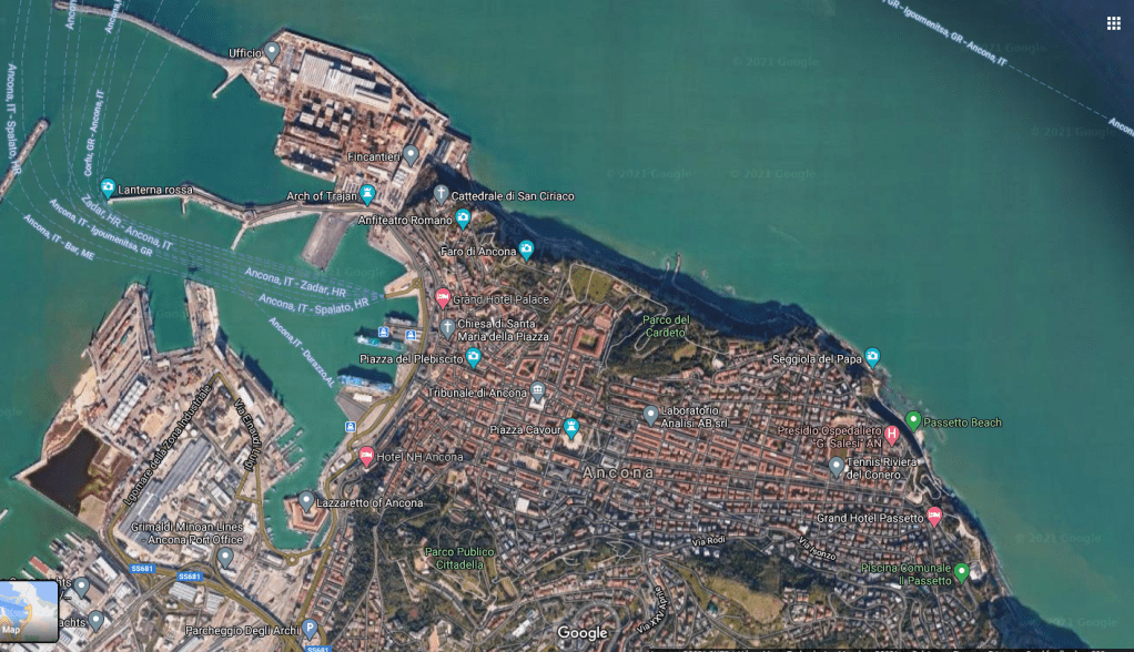 Nei prossimi giorni, parliamo di Ancona, il capoluogo delle Marche e uno dei pochi porti naturali dell’Adriatico italiano. La ragione è che nei pressi si svolse la più importante battaglia navale della guerra greco-gotica, ma credo quella di Ancona sia una storia poco conosciuta che vale la pena raccontare.