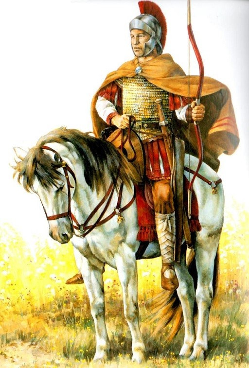 L’esercito romano iniziò quindi un processo di rapido cambiamento: la cavalleria romana iniziò ad apprendere le tecniche dei nomadi della steppa che si erano dimostrate così efficaci contro gli eserciti tardo imperiali. La cavalleria, sin dai tempi di augusto, aveva utilizzato la lancia come sua arma principale, solo reparti di cavalleria di valore inferiore utilizzavano armi da lancio, di solito il giavellotto. Queste unità di cavalleria furono riaddestrate all’utilizzo dell’arco composito asimmetrico degli Unni oltre che alle difficilissime tecniche utilizzate da questi ultimi, come tirare con l’arco al contrario, mentre il cavallo va nella direzione opposta, o compensare l’asimmetria dell’arco con una correzione della direzione della freccia. Oltre a queste tecniche, i cavalieri dovettero apprendere la tattica della steppa: contro eserciti di fanteria, i cavalieri nomadi evitavano di ingaggiare le dense formazioni di fanteria pesante, limitandosi ad inondarle di micidiali frecce da lontano, indisturbati. Contro la cavalleria pesante, gli arcieri nomadi con corazza più leggera tiravano alcune raffiche di frecce, incitando i cavalieri a caricare, poi si ritiravano prima che i catafratti potessero ingaggiarli. Queste ritirate spesso attiravano i loro avversari in imboscate più in là, oppure semplicemente lasciavano che i cavalli della cavalleria pesante si stancassero, sfaldandone la formazione e rendendoli così vulnerabili a rapidi contrattacchi. Considerate che durante tutta la durata di questi falsi attacchi e false ritirate i cavalieri della steppa continuavano a far piovere micidiali frecce che colpivano accuratamente attraverso le più resistenti armature, se a distanza relativamente ravvicinata.