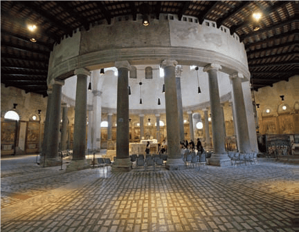 La lista per ora non vuol essere esaustiva. Il criterio che ho utilizzato è segnare solo monumenti che hanno visibili lasciti dell’epoca: una chiesa costruita originariamente nel IX secolo ma dall’aspetto completamente barocco non è stata inserita. La ragione è che questa vuole essere una guida “turistica” per scoprire i capolavori artistici della Roma medievale: se non ci sono chiare vestigia, tutto sommato non ha senso inserirla. Lo stesso vale per lasciti molto poveri, come quelli della chiesa di San Pietro di Costantino: nei sotterranei della colossale San Pietro attuale si possono vedere alcuni resti, ma sono davvero poca cosa. Questa in basso è la lista dei monumenti principali.