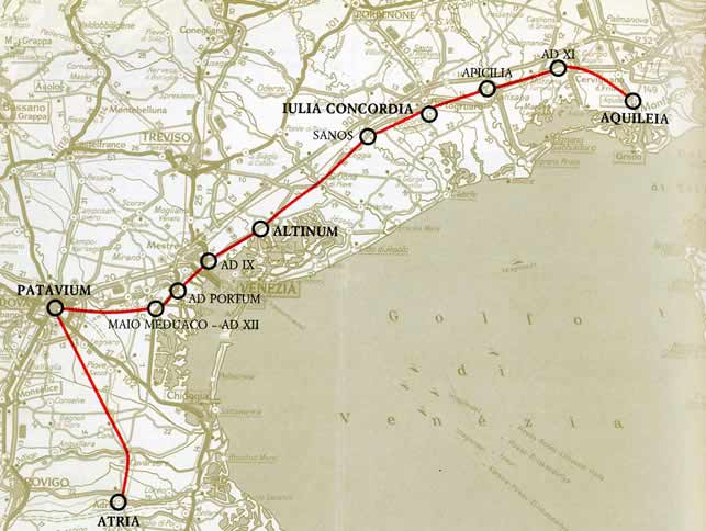 La nuova via Annia collegò Hatria (Adria) a Patavium (Padova) per poi giungere ad Altinum (Altino), Iulia Concordia ( Concordia Sagittaria. Qui si immetteva nella precedente via Postumia e giungeva fino ad Aquileia.