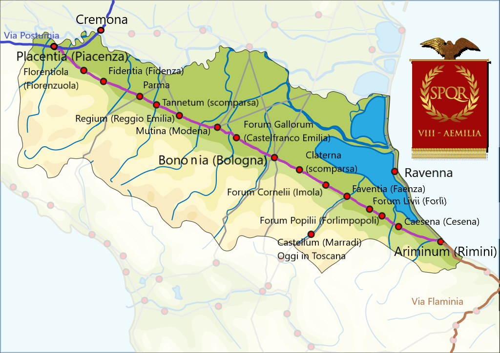 Oggi parliamo di una via romana che ha dato il suo nome ad una regione di Augusto e anche a (metà) del nome di una moderna regione italiana: la via Aemilia.