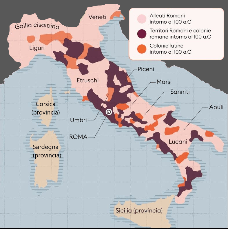 Dopo secoli di guerre ed espansioni, Roma è arrivata a dominare l’intera penisola italiana, con una complicata rete di alleanze e associazioni al potere centrale di Roma. La maggior parte degli abitanti della penisola non sono però romani, e non condividono i privilegi dell’Impero mediterraneo che Roma ha conquistato.