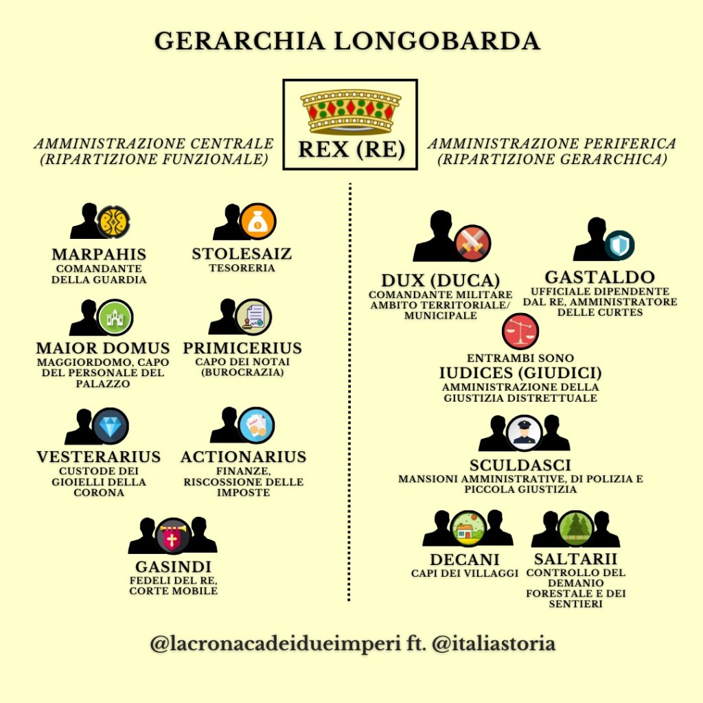 In questa infografica, trovate una rappresentazione grafica delle principali istituzioni e funzionari del regno longobardo.