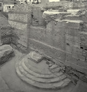 Il palazzo e chiesa del Myrelaion furono però costruiti su rovine di un’edificio ben più antico, di forma ottagonale: una grande rotonda di enormi dimensioni, seconda solo al Pantheon nel mondo romano. Questa più antica rotonda fu ricoperta e trasformata in cisterna a supporto del palazzo sovrastante. E’ in questa struttura che è stato trovato il piede dei Tetrarchi. La rotonda fu infatti riscoperta solo nel 1931 e vi furono fatti degli scavi sistematici nel 1965.