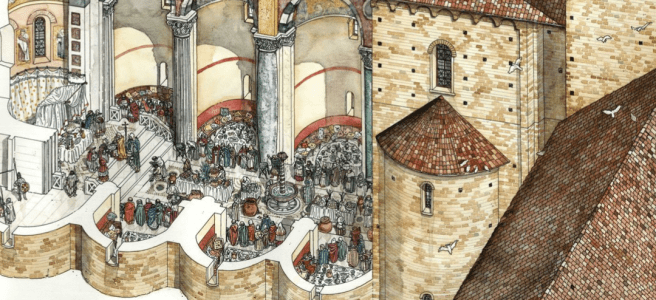 Prima del Vaticano, c'รจ stato il Laterano Per ascoltare la puntata, clicca in basso! https://open.spotify.com/episode/7lhilvo9REP36uzWONuFZs?si=146fa57e2955412f C'รจ un angolo di Roma - il Laterano - che, da solo, racchiude piรน eventi e stratificazioni storiche di quello che di solito si possa trovare in un'intera cittร . --- Nell'immagine: ricostruzione dell'Aula conciliare di Leone III, il piรน importante … Leggi tutto Il Patriarchio del Laterano (VIII secolo), ep. 188 con Giuliana Massimo